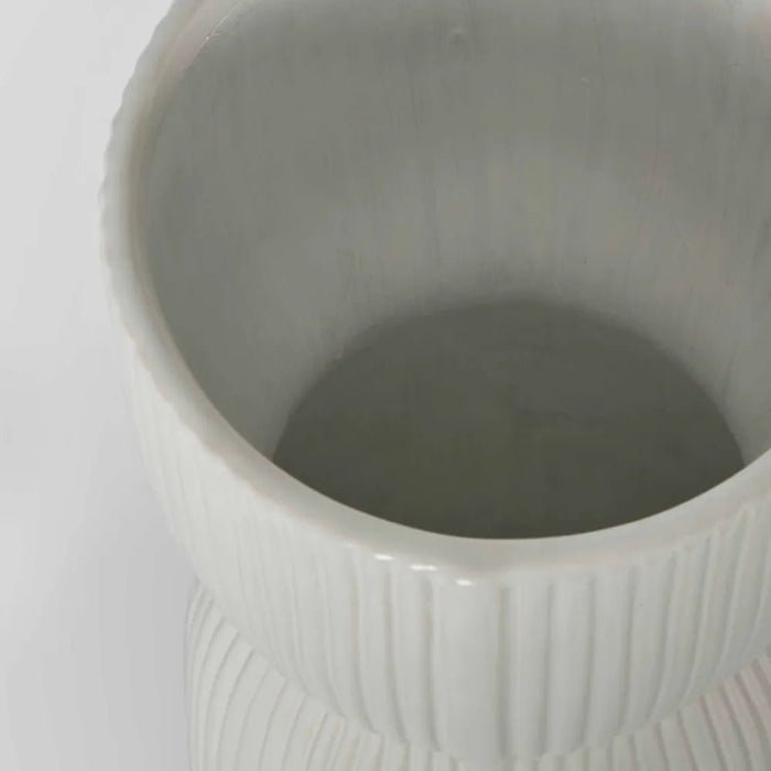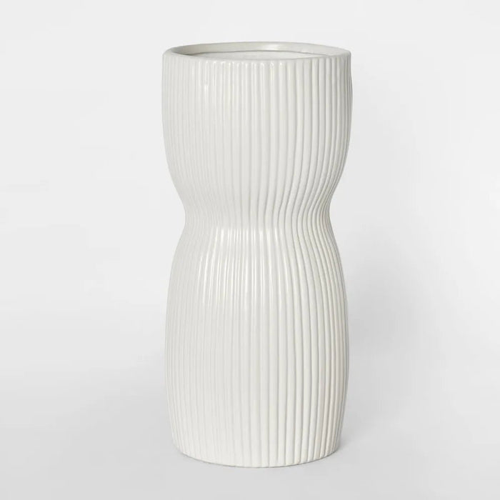 Introducing the "Alden Grand Jar," a central piece from our Austin collection. This large white vase showcases a stunning organic shape paired with ribbed details that enrich any decor with effortless elegance. Masterfully crafted, this vase isn't just a home accessory—it's a declaration of refined taste and modern sophistication. Perfectly suited for your dining table as a statement centerpiece or as a sophisticated addition to your living room, it transforms everyday spaces into showcases of style. The Austin glazed vase collection is intentionally designed to satisfy your desire for distinctive home decor. With this vase, your environment will not only speak of elegance but also echo a profound sense of style without uttering a single word. Elevate your home with this exquisite piece and let the silence be filled with the language of luxury.
