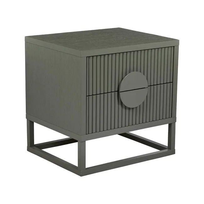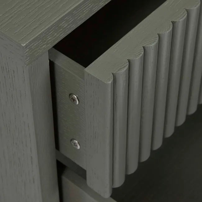 The Benjamin Ripple Bedside in Snowgum is a standout piece that brings bold texture and refined design to your bedroom. Featuring a sturdy timber construction, this bedside table boasts clean, minimalist lines and a geometric frame for a contemporary aesthetic. The ripple motif on the drawer fronts and the signature button handle in matching snowgum add a touch of textural interest and elegance.