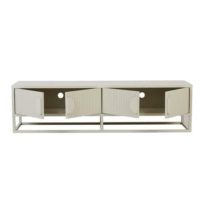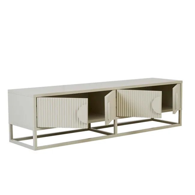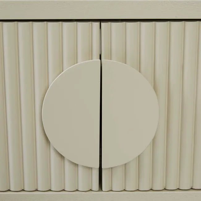 The Benjamin Ripple Entertainment Unit in Putty is a sophisticated blend of style and functionality, designed to elevate your living space. Featuring rippled doors crafted from ash veneer, this unit introduces bold texture and visual interest to your interiors. The slender base and handles in a matching putty tone create a harmonious and modern look, while offering customisation options to reflect your personal style.