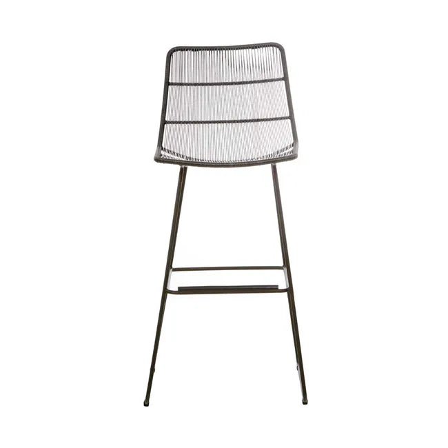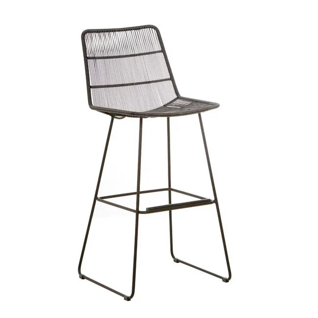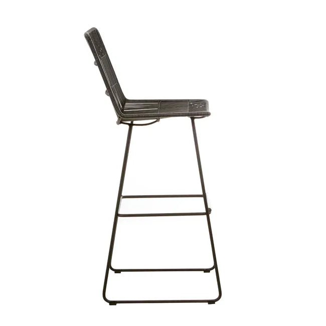 The Granada Sleigh Barstool in Licorice offers a contemporary update to classic outdoor seating. Its sleek galvanised metal frame and airy construction exude effortless sophistication, making it a standout addition to alfresco spaces. The vertical woven pattern, crafted from durable 2.5mm resin in a bold licorice hue, adds depth, texture, and a modern aesthetic.