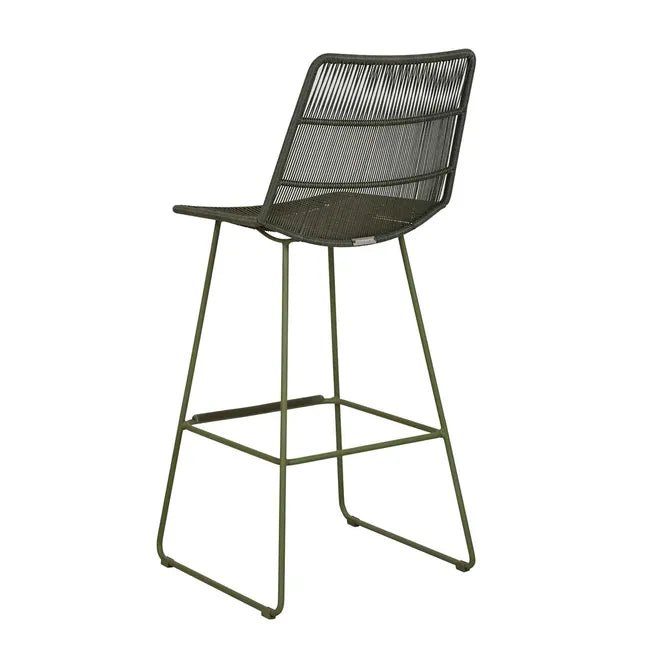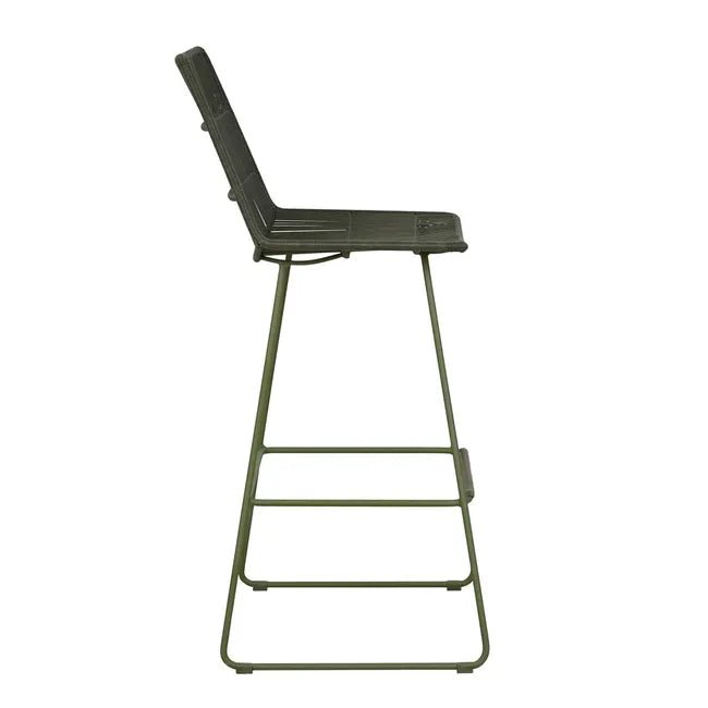 The Granada Sleigh Barstool in Moss combines timeless outdoor elegance with modern design. Featuring a durable galvanised steel frame finished in a powdercoated moss green hue, this barstool offers a sleek, airy silhouette with contemporary flair. The vertical woven pattern, crafted from 2.5mm Ecolene resin, adds depth and texture, making it both functional and visually appealing.