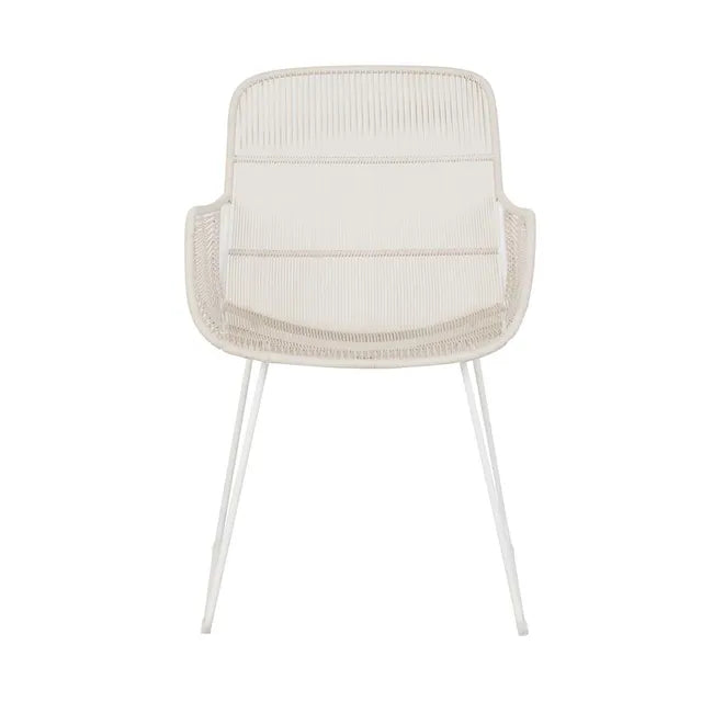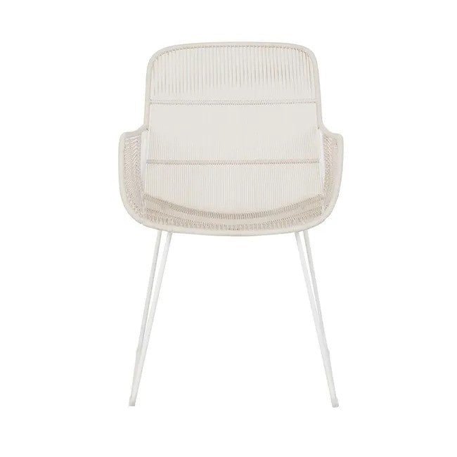 The powder-coated galvanised steel frame in crisp white adds strength and sophistication, making it a perfect addition to contemporary alfresco dining spaces. Whether paired with a sleek dining table or used as a standalone accent piece, this chair invites relaxation with effortless style.