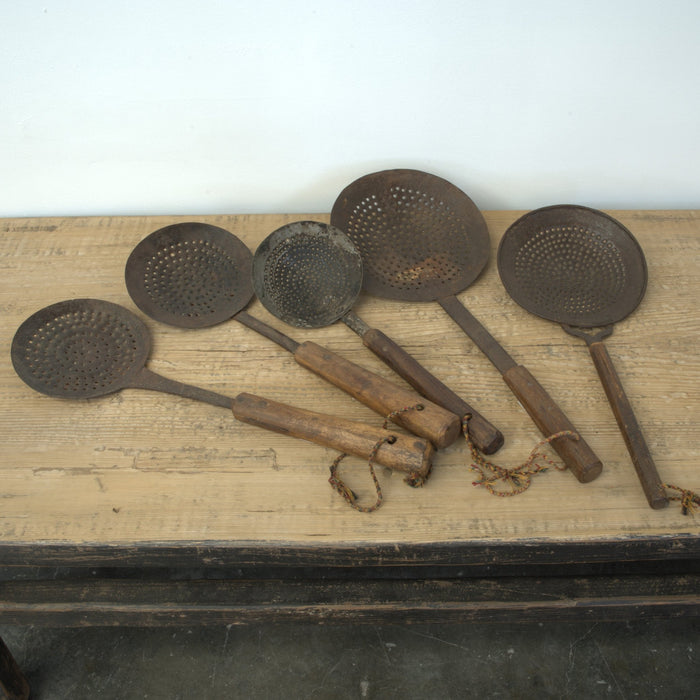 Bring a bit of the orient into your home with these old Indian Spatulas that were used to frying food in oil.