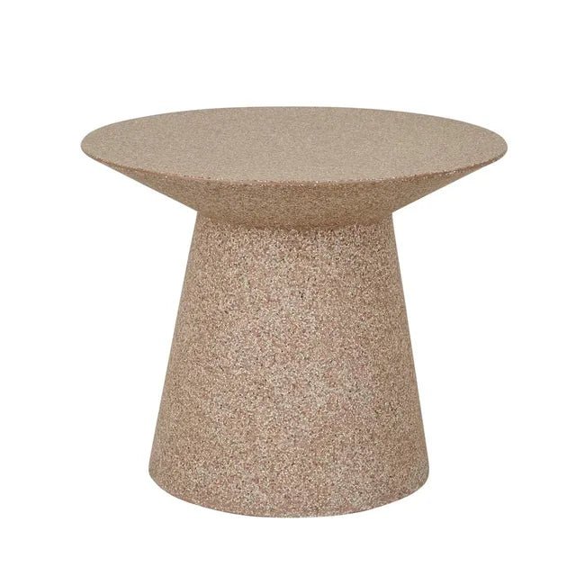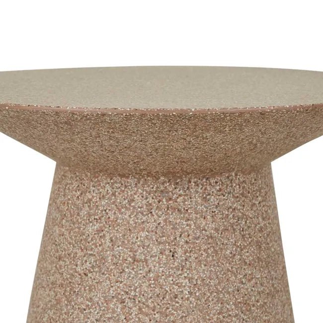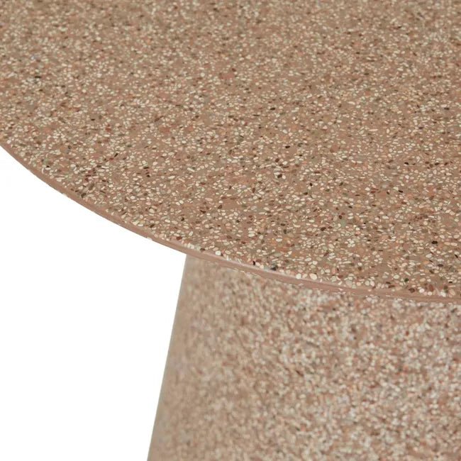 The Livorno Round Side Table in Terracotta Speckle is a minimalist design with earthy textures and bold lines. Featuring a lush round silhouette, this sculptural piece brings a touch of modern elegance to forgotten corners, making it an ideal choice for both indoor and outdoor settings.