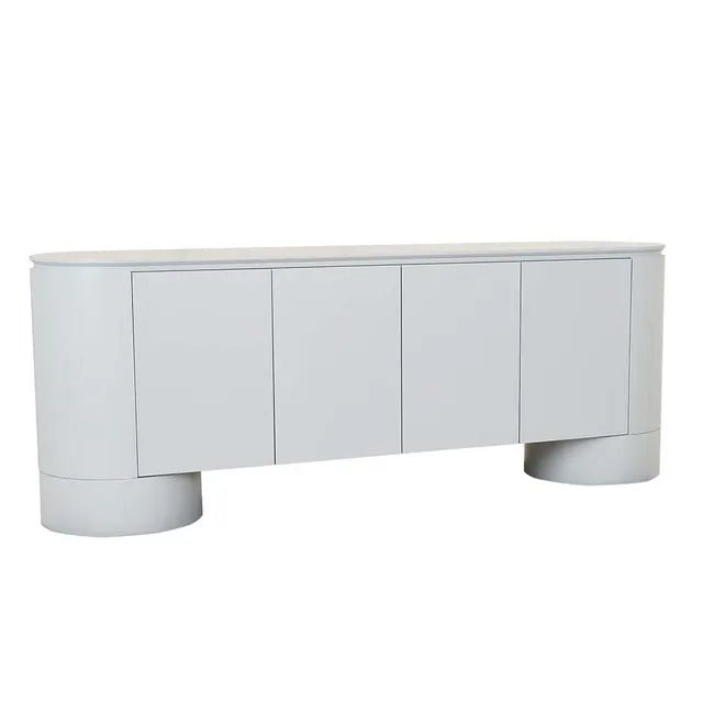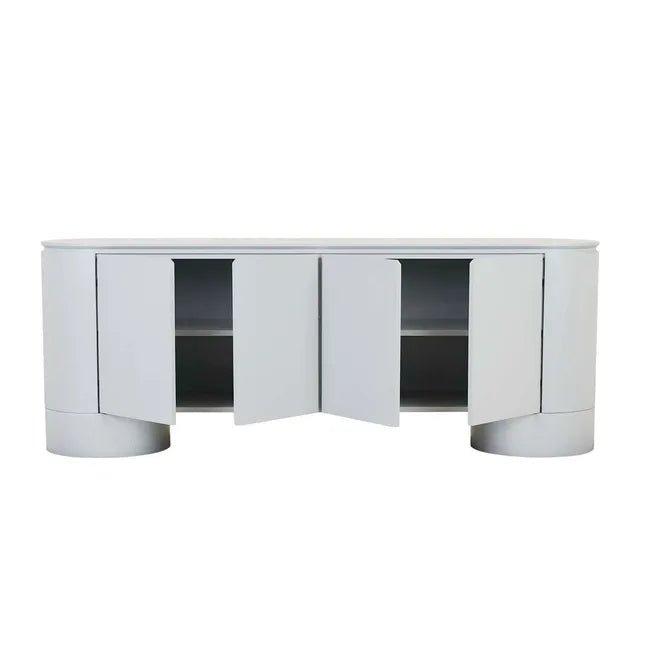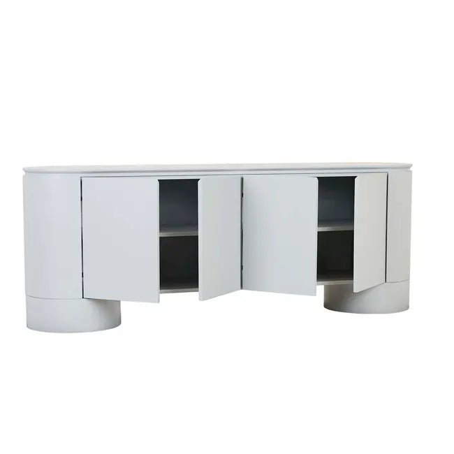 The Pluto Buffet in Powder Blue brings bold design and minimalist elegance together in one striking piece. Its rounded silhouette and impressive circular legs create a sculptural presence, while its functional interior provides practical storage for modern living spaces.